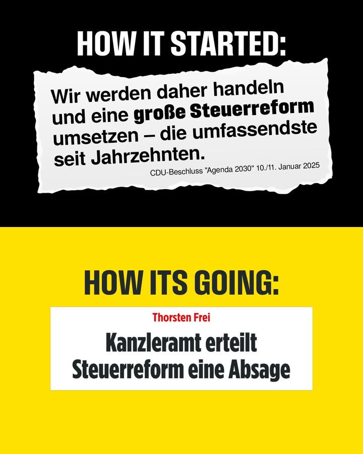 😑 Der Kanzleramtschef rudert zurück… Dabei hätte der Kanzler schon längst den Hebel umlegen müssen: Die Bundesregierung muss eine radikale Kursänderung in der Wirtschaftspolitik einleiten und steuerliche Entlastungen in den Vordergrund stellen. Es braucht eine spürbare Senkung der Einkommensteuer, eine Absenkung der Unternehmenssteuern sowie die vollständige Abschaffung des Solidaritätszuschlags – zur gezielten Entlastung von Arbeitnehmern, Selbstständigen und mittelständischen Betrieben.